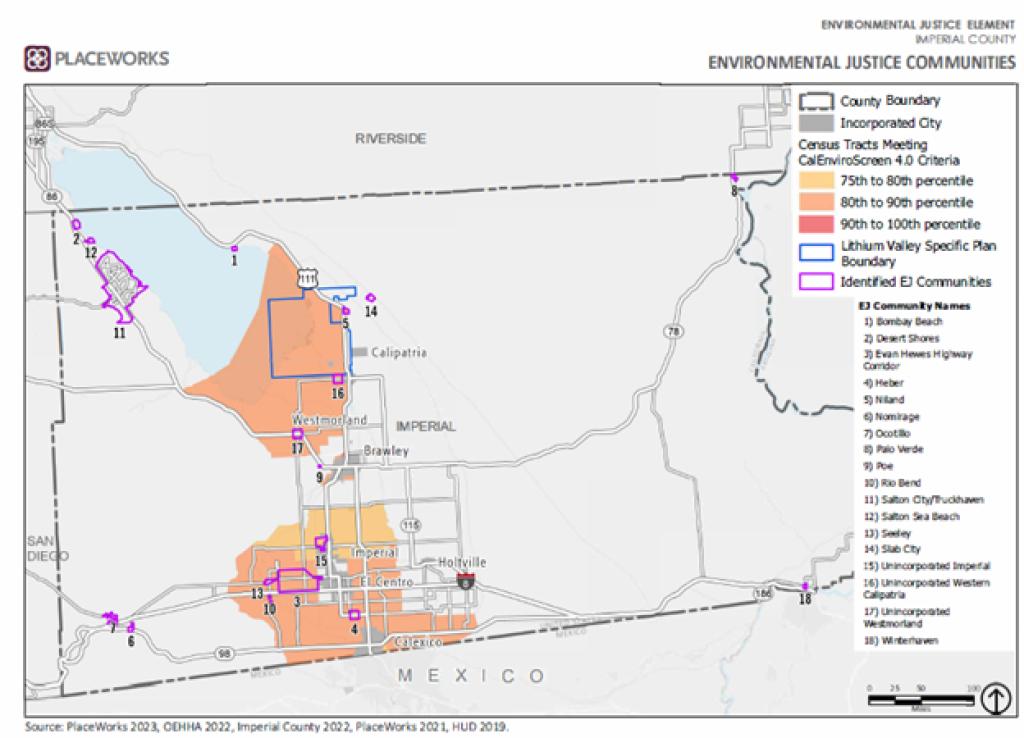Identified Environmental Justice Communities in unincorporated Imperial County are shown on the map below. They are: